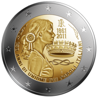 | 2 € Italy - Commemorative 2011 - 150th Italy - 1861-2011 - I° version - bimetallic |